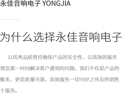 拉薩永佳音響電子有限公司 拉薩永佳音響電子有限公司坐落于美麗富饒的圣城拉薩,公司前身為拉薩昊成音響電子銷售有限公司,注冊(cè)資金為300萬元,成立于2010年3月公司地址位于西藏拉薩市貢布塘南側(cè)1號(hào)薩博廣場4-5、4-8號(hào)。拉薩永佳音響電子有限公司主營專業(yè)舞臺(tái)音響設(shè)備、會(huì)議音響系統(tǒng)設(shè)備、公共廣播音響系統(tǒng)設(shè)備、網(wǎng)絡(luò)及監(jiān)控設(shè)備、多媒體教學(xué)設(shè)備、多媒體投影機(jī)、幕布、弱電線材、辦公設(shè)備、LED液晶顯示屏品種齊全、服務(wù)效率、拉薩
